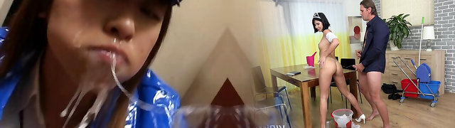 Asain cum slurper gets double torn up
