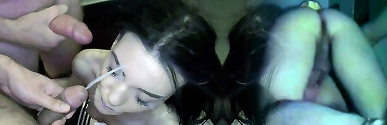 Submissive Asian College Teen At Rough Anal Gang-bang And Bukkake