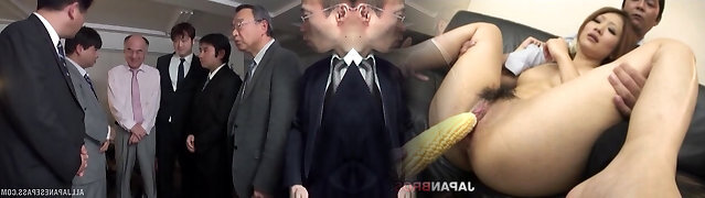 Busty Asian slut gets gang screwed by horny businessmen