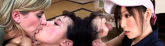 Comely brunette from Japan Saya Natsukawa blows before doggyfuck
