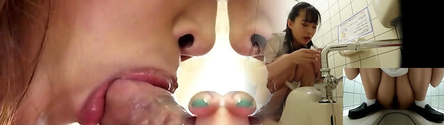 Fancy Japanese babes filmed peeing in closeup