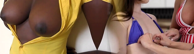 Rae Lil Black comes to the beach to have Interracial with Ebony Stranger