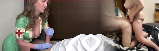 enfermera humeante acariciando profesionalmente un eje y un popshot