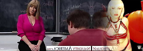 Naughty America - Big tit lecturer Sara Jay helps student fuck for the first time