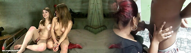 BBC fucks gorgeous backside pyramid and cums on three pretty steaming babes