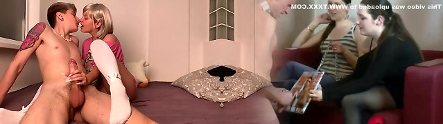 Funny blond teens take a chance to suck a strong hot and big cock (FFM)