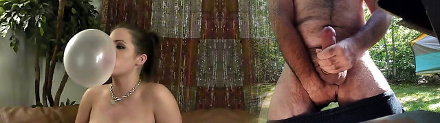 Luxurious MILF with big tits blows a gigantic bubblegum bubble