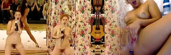 Hot Blondes groupies enjoys threesome with a hairy man