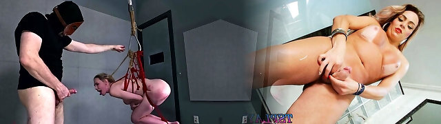 Bound & Gagged Buxom Blonde Hopping Around