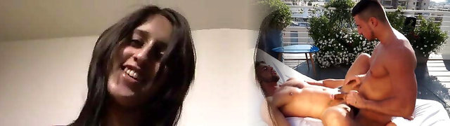 Slutty brunette gets sandwiched and facialed by 3 black men