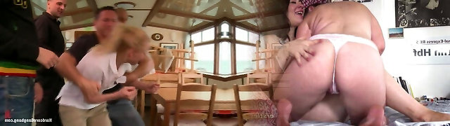 BBW whore with huge boobs and big booty is gang-fucked brutally