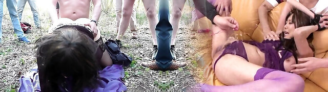 Hot wifey gangbanged by over 10 strangers in the woods