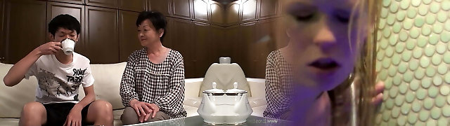 Chinese grandma and mom take young cocks in beds