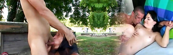 Naughty slut Betina gets her cunt eaten out while throating a dick