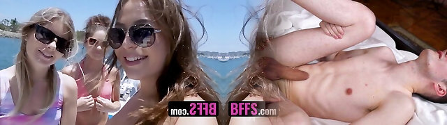 Three crazy honeys are sharing on big cock in a yacht