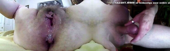 Opening a big hairy dirty wet mature granny pussy