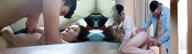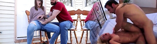 A kinky stepbrother doesn't mind helping his stepsisters by fucking them rock-hard