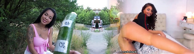 Cucumber in her vagina, cucumber in her ass