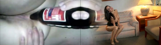 Skinny amateur girl pounding huge bottles