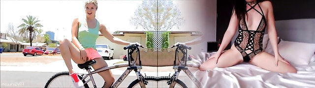 Public romp with sassy blonde babe penetrating her slit a bike's part