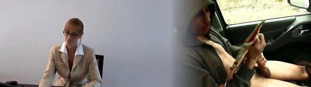 Nerdy office chick has a chance to spread her legs for the pointy dick