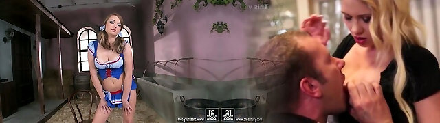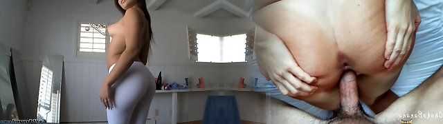 Lovely dark-haired Sofi Ryan attacks a guy for a fuck in a kitchen