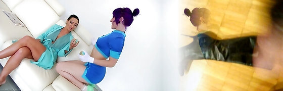 Sizzling ass babes in uniform get in a fetish tonguing toying and fingering gig in a close up shoot