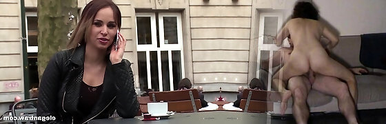 This nice unexperienced babe is playing with her tight pussy in public and she is not shy