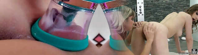 A nice delicious vagina is sated with a special vacuum masturbator