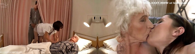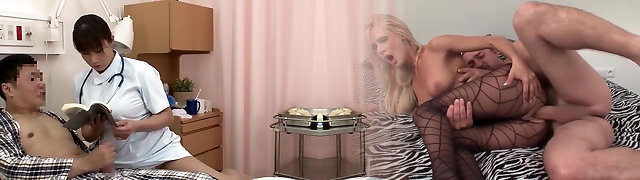 Looks like the Japanese nurse is totally in love with that prick!
