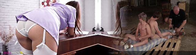 Senior bitch in stockings Lotty Blue hooks up with one young college girl