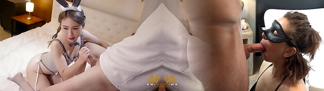 Asian sweetie Annie sucks delicious cock before riding her stud on top