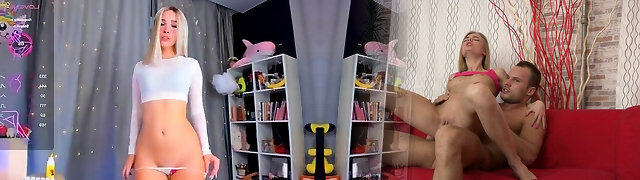 The blond daughter doesn' t wear pajamas or panties to let her stepdad secretly pound her at night