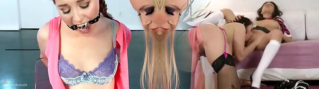Anna Blond and playful hotty greedily blow as well as ride strong big trunk