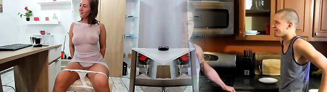 Beautiful Brunette in White Satin Panties on Humungous Ass Loves to Fuck in the Kitchen