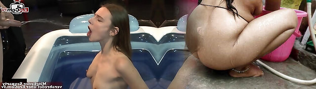 Lot of dudes fuck bunch of wet cunts by the pool - Alyson Goddess