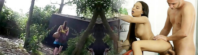 Super-cute Girl tricked Thin Classmate to Lesbian Public Sex on way home