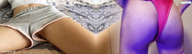 Petite nude pussy in short shorts. Sexy red gash. Hidden penetration in short shorts. Sweet pussy and rump.