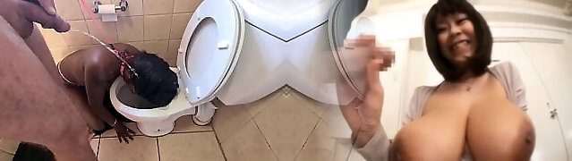 Desi whore gets ambled like a to the restroom to get her face pissed on and sucks cock