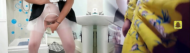 I can'_t stop snooping on my stepmom while she is in the douche and frees herself from the air