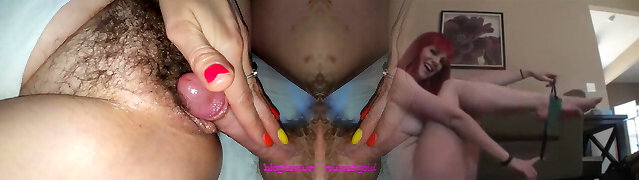 Babe with shaven fuckbox holds husband's cock like a sword and makes him Cum soon