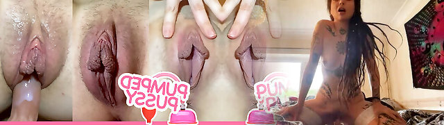 Slutty girl pumps her pussy, then commences riding ample dildo. Her wet creamy pussy gets an orgasm.