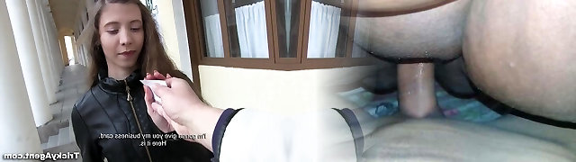 Shy girl from Russia shows talents of her gullet and cunny to one tricky agent