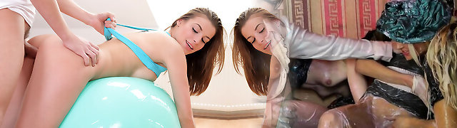 Slutty sandy-haired in first gang bang College-aged and ready to go