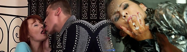 Busty Cougar Abigaiil Morris is deep-throating and riding Quinton James's cock until he cums