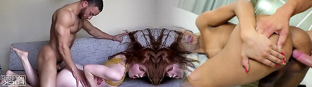 TWO GINGER TINY GIRLS HAVE ROUGH 4some INTERRACIAL BBC FUCK