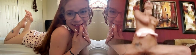Big booty redhead cougar blows her skinny BF's big cock until happy ending
