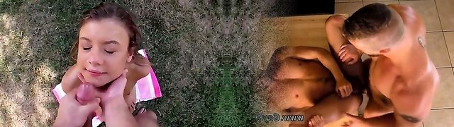 Sperm Interchange teen with braces shares cum with skinny blonde