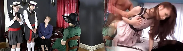 Perverted headmaster cropping his teen pupil