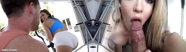 Slim and fit Sarah Vandella humps her trainer in a gym